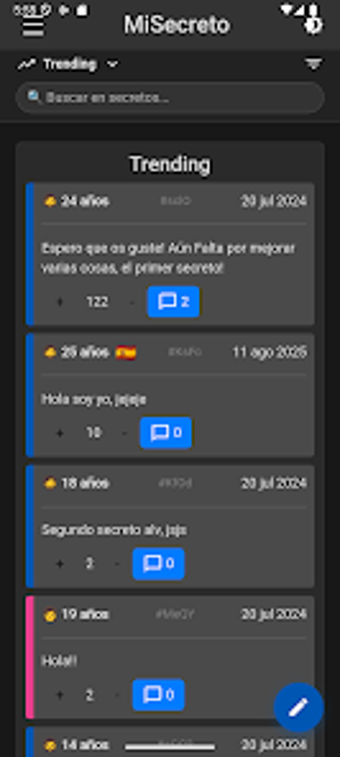 MiSecreto هو تطبيق أندرويد مبتكر مصمم لأولئك الذين يرغبون في التعبير عن أفكارهم وأسرارهم بشكل مجهول. تتيح هذه المنصة الاجتماعية والتواصل المجانية للمستخدمين مشاركة الاعترافات والأسرار والتجارب دون الخوف من الحكم. مع واجهة بسيطة، تشجع المستخدمين على التواصل مع الآخرين الذين يبحثون عن مساحة آمنة للتنفيس. يعزز التطبيق بيئة من الدعم والفضول، مما يجعله خيارًا مثاليًا لأولئك الذين يسعون للتواصل بمشاعرهم الداخلية دون الكشف عن هويتهم.